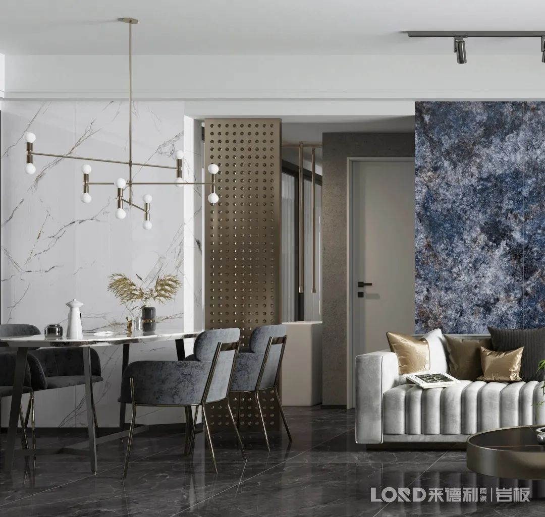 它也可以是海阔天空,空灵天然,演绎低饱和度、相比纯度较高的莫兰迪蓝,给予我们惬意舒畅的家居体验。