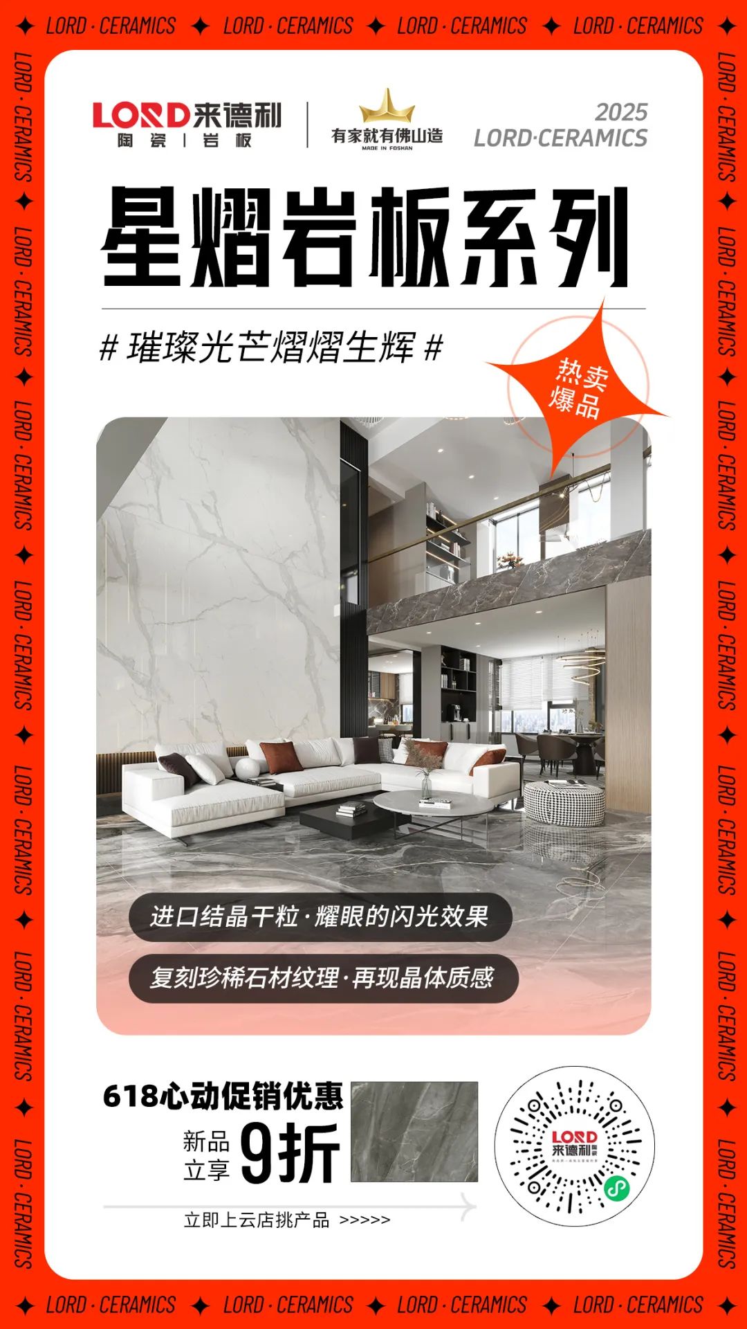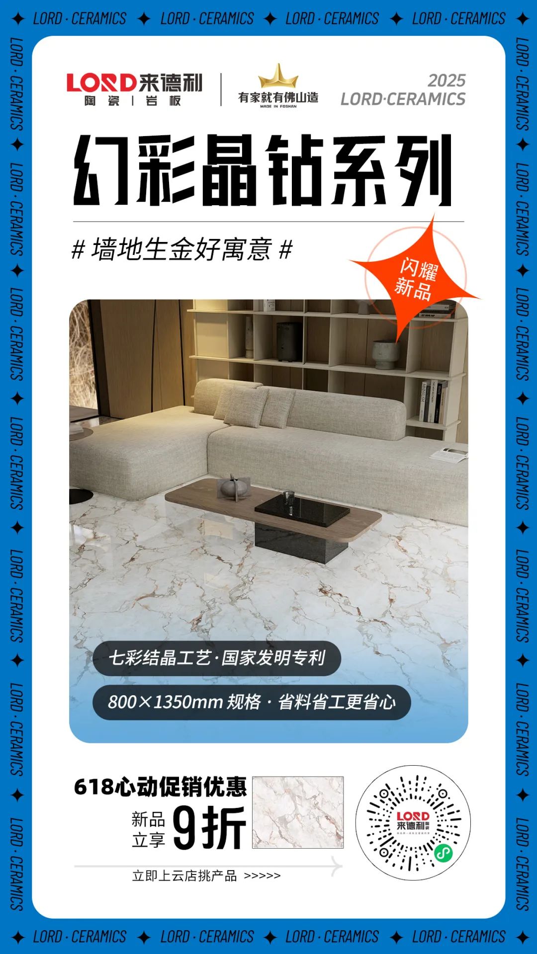 本次618促销狂欢中,j9.com陶瓷倾力推出的「幻彩晶钻系列」产品,以其卓越性能和创新的800×1350mm黄金规格,成为当之无愧的市场焦点与销量担当。 该系列不仅传承了品牌严苛的工艺标准,更在材质、花色、质感和应用性能上实现突破升级,一经面世便获得市场高度认可。