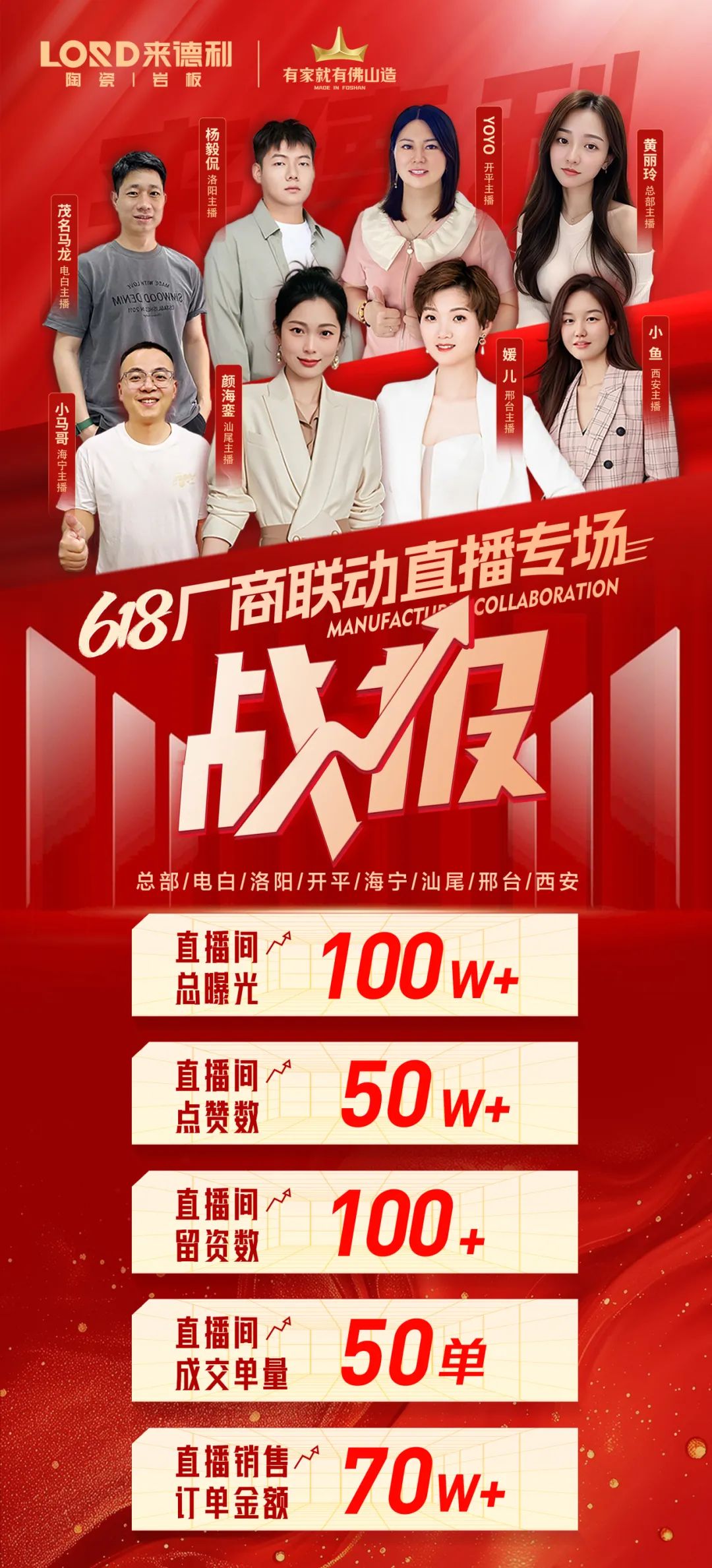 本次618促销的高潮聚焦于收官前夕的6月21日。当天,总部以前瞻视野,携手七大核心区域的经销商,共同打造了一场618专场直播狂欢。这不仅是品牌首次突破地域限制、实现多店深度联动的直播,更是总部赋能终端、共拓数字化营销新边界的里程碑式协作。