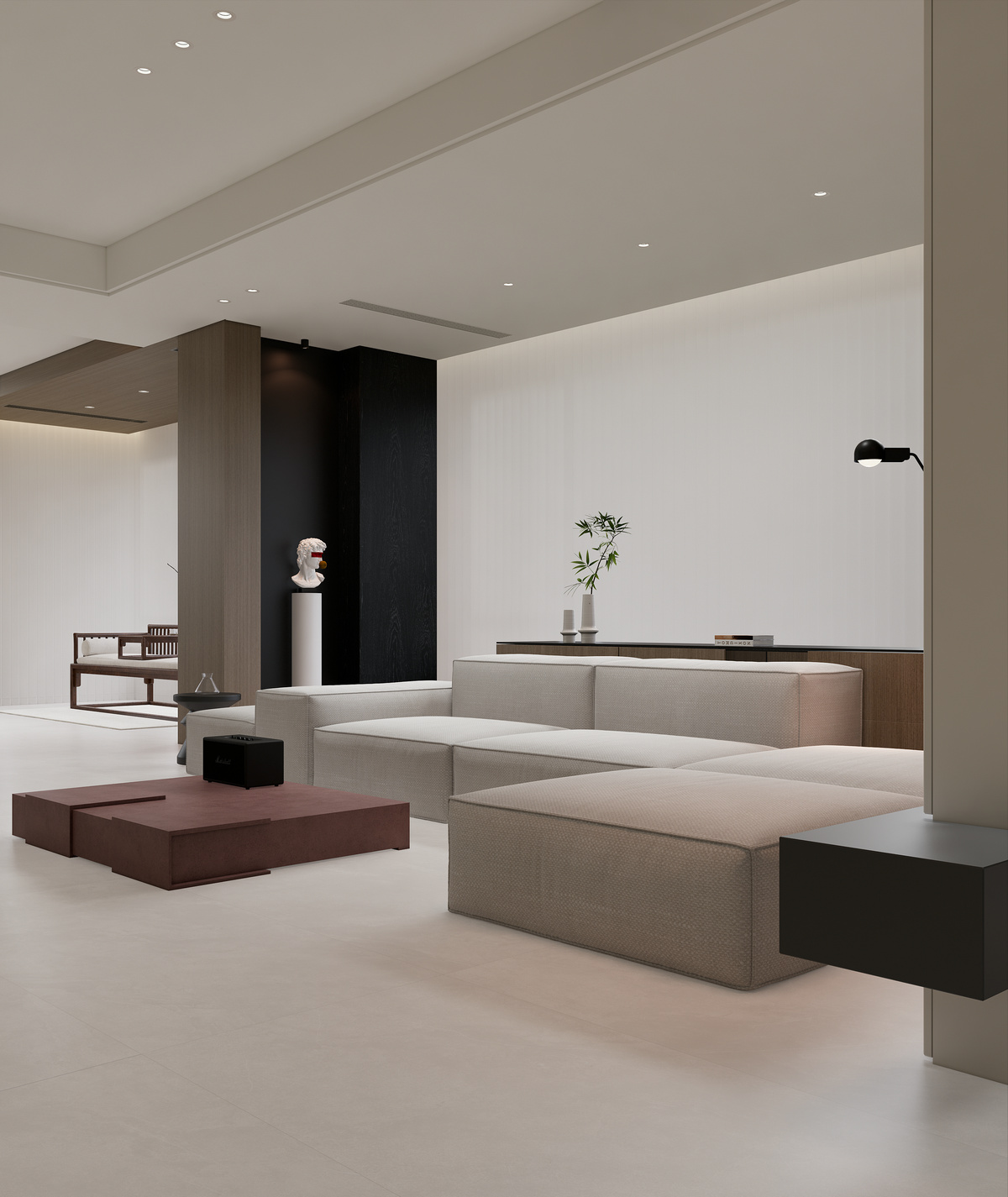 以柔和的浅灰为主色调,恰似清晨山林间弥漫的薄雾,带着一丝轻盈与静谧,为空间营造出舒缓、平和的氛围。其纹理细腻且富有变化,如同雾气在微风中悄然流动,隐隐绰绰,似有还无。