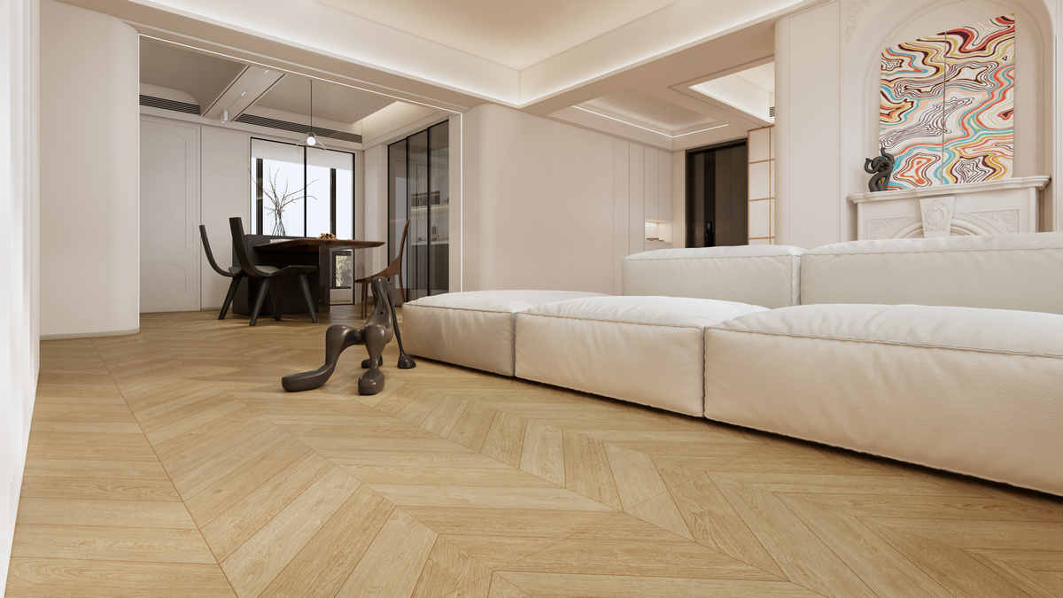 棕色调深浅交替的鱼骨纹理沉稳大气,有着岁月沉淀的高雅气息,处处透露着不俗的艺术品味。