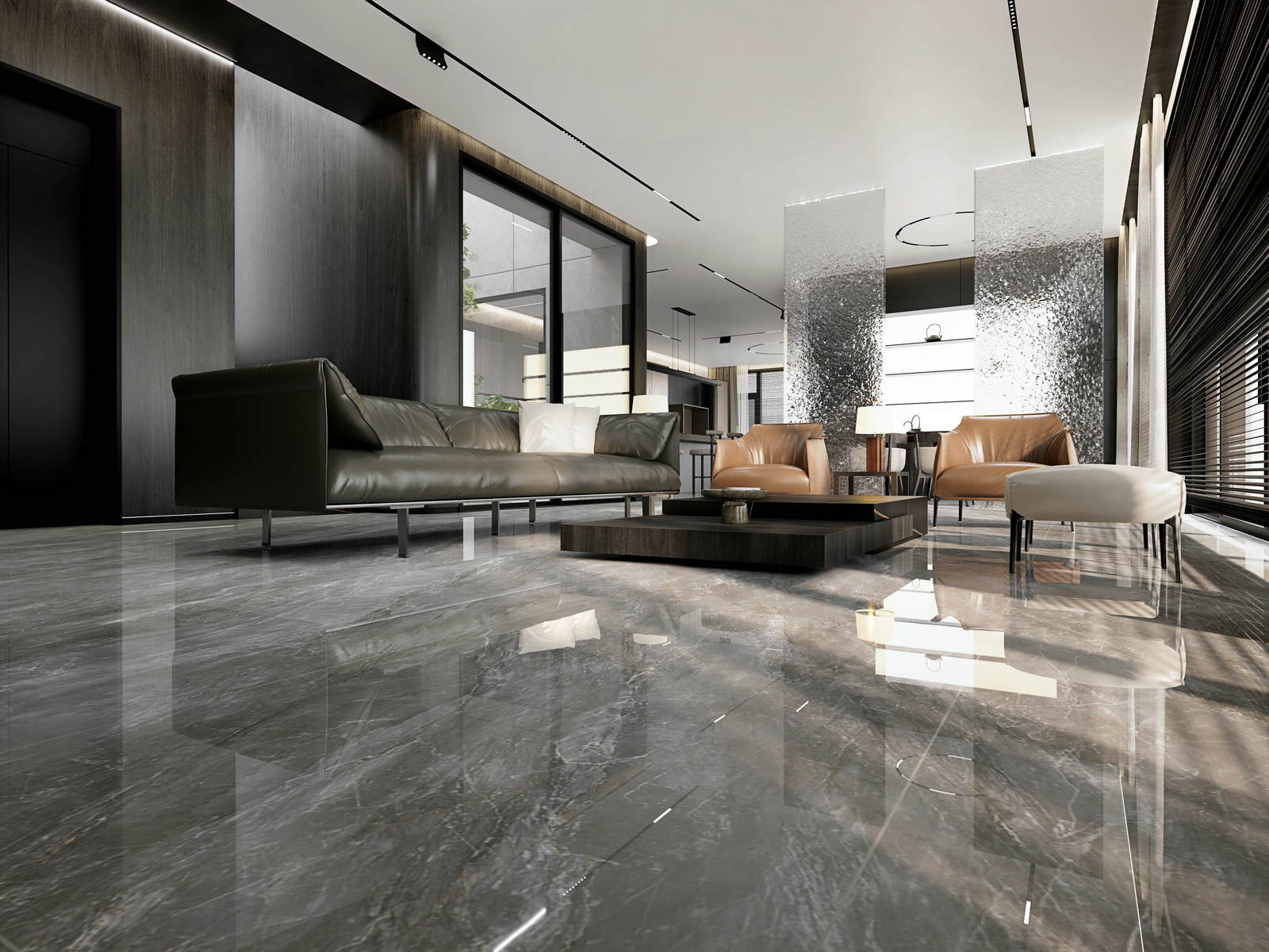 如云烟般的纹理游走于深灰的底色之上,犹如穿梭在山间的云丝,有一种朦胧的美感都能够赋予纯粹、自然的美感。让居者在安静而不浮躁的状态下体会空间的美与奢。