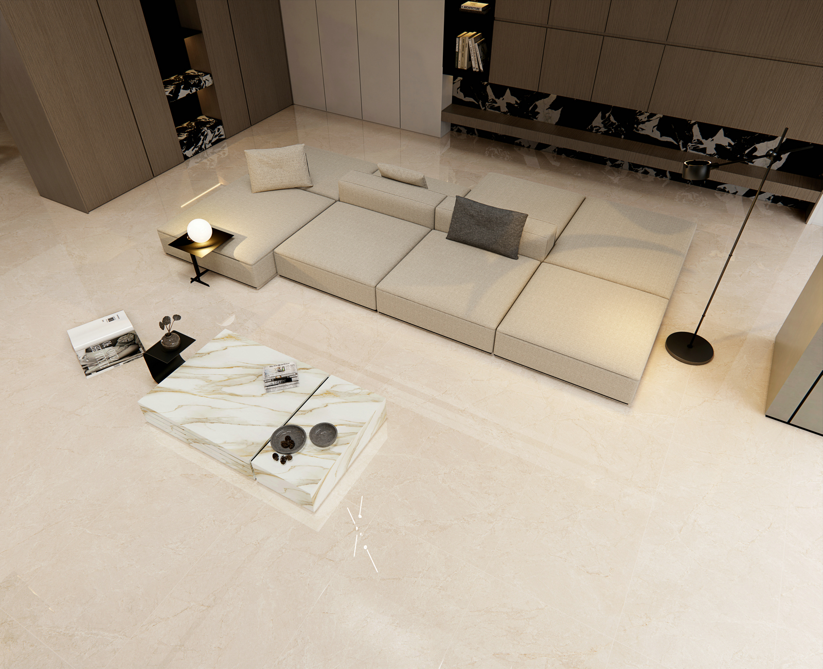 独一无二的细闪光影效果,质感通透、砖面线条纹理超凡脱俗、瑰丽迷人,配以柔和的米黄色泽,令产品更为纯真自然,尊贵典雅的神秘魅力油然而生。