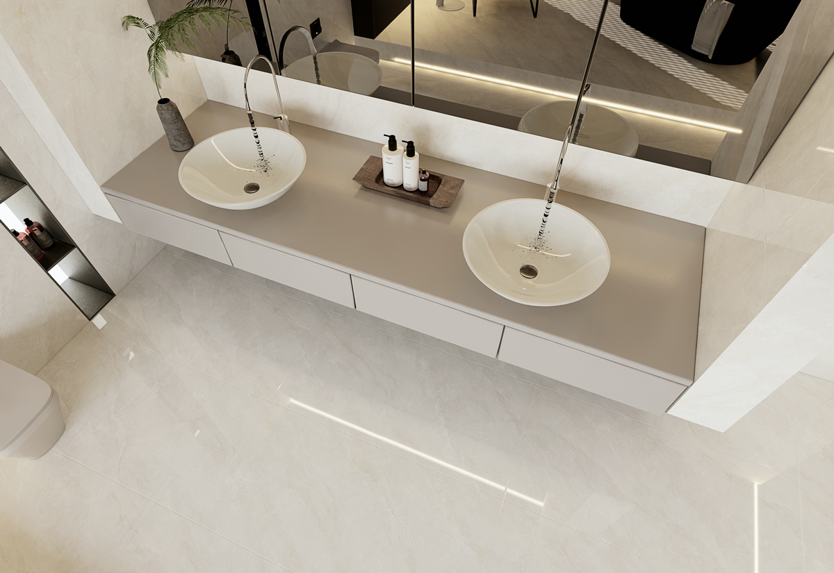 米黄色调自带温馨感与亲和力,近似底色的石纹在不同灰度间和谐变幻,低调而不失奢华气质,细微之处窥见奢石风范。